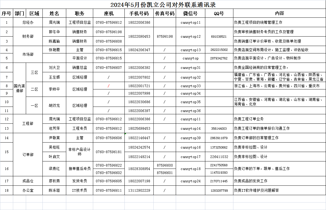3. 凱立淋浴房對外聯系通訊錄