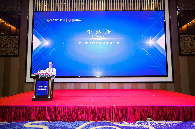 接著,中山淋浴房行業協會秘書長李炳新先生致辭,作為淋浴房行業第一影響力的行業協會,李秘書長針對市場發展態勢和行業破局的方向給出了新的思路和途徑,為行業內的各類人士在建材行業的遇冷期提供了新的舉措。