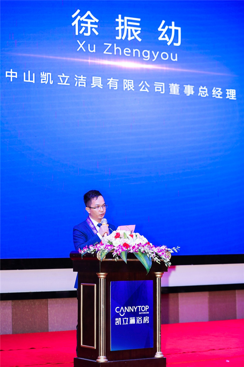 隨后,中山凱立潔具有限公司董事總經理徐振幼先生發表主旨講話,徐總對長期以來與為凱立淋浴房品牌的推廣做出了貢獻的戰略合作伙伴北京先風藝術設計、廣州華影影視、佛山一品上水、佛山大璞設計、廣州佰賽網絡等表示衷心的感謝;對各界領導、嘉賓長期以來對凱立企業發展的支持表示誠摯的謝意;徐總描繪了再當前大環境下的凱立品牌的戰略發展定位,從人才結構、產品結構、價格體系、營銷體系、服務體系等各方面全面提升品牌的硬實力,突出品牌力、產品力、營銷力的現實表現,為各地合作伙伴的生存和發展奠定堅實的基礎。
