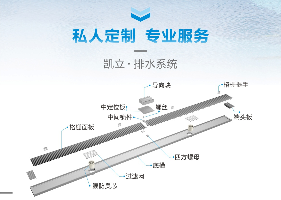 凱立新品H11/H21致享系列–無障礙排水系統(tǒng),懂你生活的追求與向往,以簡(jiǎn)潔現(xiàn)代的設(shè)計(jì)風(fēng)格,精湛工藝和舒適尊享合而為一,融合人與自然多重思緒,滿足美觀、便捷、安全等多方面需求,為你打造健康與愜意淋浴生活。