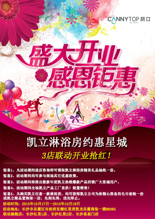 今日凱立淋浴房約惠星城,真情回饋新老顧客,推出驚喜5重禮!驚喜不劇透,喜歡就來我們的凱立旗艦店吧。